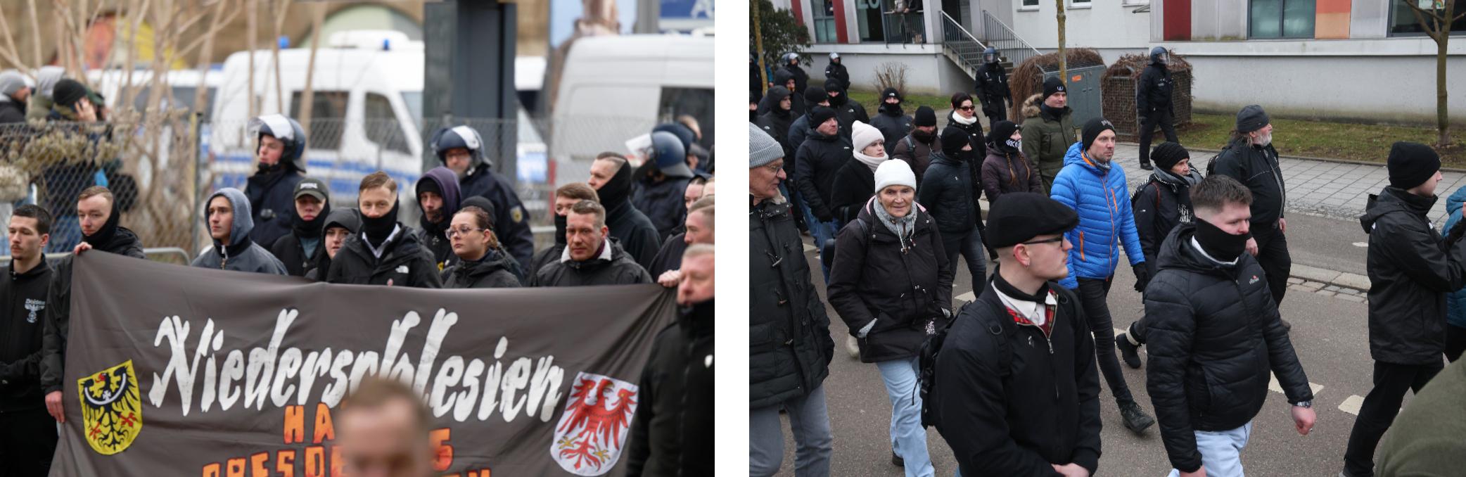 Als Überrest einstiger Kameradschaftsstrukturen in Chemnitz lief Marcel Bendel in Dresden mit. Er war Teil der 2014 verbotenen „Nationalen Sozialisten Chemnitz“. Bekannte Chemnitzer um ihn herum fanden sich dieses Jahr, anders als in den vergangenen Jahren, nicht. Stattdessen bestritt er den Aufmarsch mit dem Bornaer Karsten Promnitz. Der langjährig aktive Rechtsrockhändler Yves Rahmel, der den NSC ebenfalls nahe stand, stellte, wie die vergangenen Jahre auch, die Bühnentechnik für den Aufmarsch. Er ist einer von zwei Chemnitzern, die dieses Jahr eine organisatorische Rolle beim Trauermarsch innehatten: Der Fraktionsgeschäftsführer der Fraktion Pro Chemnitz/Freie Sachsen im Chemnitzer Stadtrat und Ortschaftsratsmitglied in Chemnitz-Röhrsdorf, Michael Brück (ehemals Nationale Sozialisten Dortmund, Die Rechte) trat dieses Jahr als Pressesprecher des Aufmarsches auf.